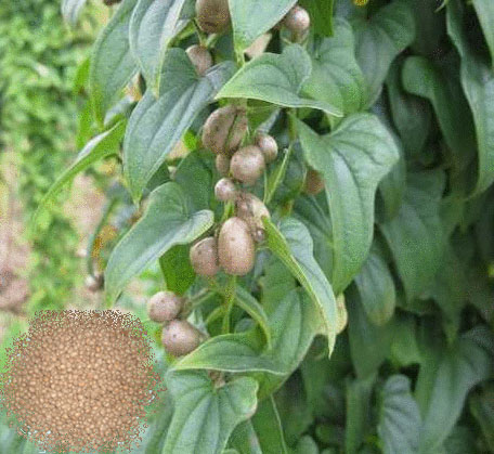 山藥在地下部分形成塊莖的同時(shí),在地上部葉腋間著生很多的零余子。零余子是腋芽的變態(tài),也即側(cè)枝的變形,稱為地上塊莖,也叫氣生塊莖或株芽,普通稱為山藥豆。零余子呈橢圓形,長1-2.5厘米,直徑0.8-2厘米,褐色或深褐色,每667平方米產(chǎn)量可達(dá)200-600千克。
